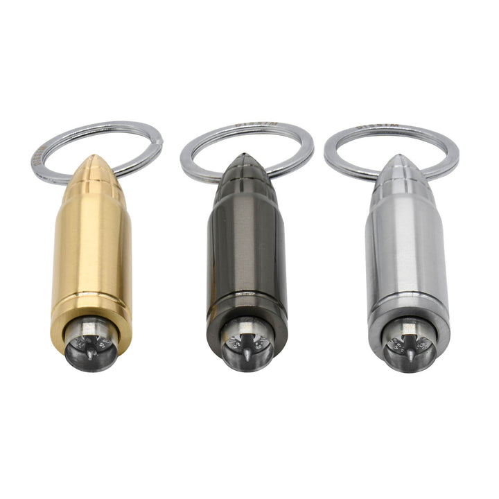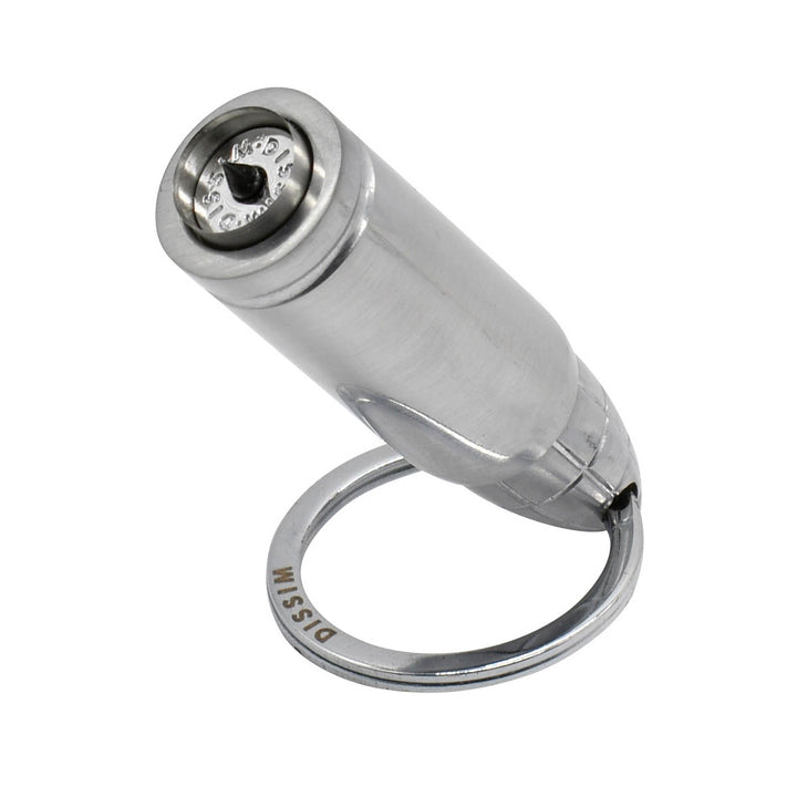 From its unmistakable tactical shape of a Bullet and you turn the head of the bullet to extend and retract the punching mechanism out of the body of the unit to 2 separate punching depts. The unit locks into place for these 2 depths depending how deep of a punch you want. Outside of the high quality feel, premium key ring, brushed finish where the uniqueness shines and is un like any other punch on the market is within the mechanism, it has a extra sharp 11mm blade to punch like standard punches but it also has a very sharp center awl that extends from the center of the blades by 2 mm beyond the outer ring blade and then fully retracts flush with the body. What this does is it bores out a center hole that is deeper, allowing for better flow and puff from a standard punch because it goes in deeper into the cigar and also is the best guide for lining your punching point in top dead center so you don’t crack the cap or have an off punch. This little awl also gives you consistent mini Frisbee looking cap removals consistently keeping the punch unit as well as the area you are punching cleaner. Every twist you feel the unique mechanism decisively click into depth as it extends and retracts.